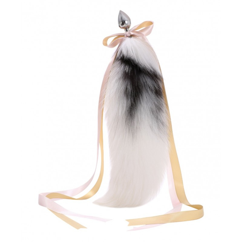 Анальная металлическая пробка с пушистым хвостом Detachable Cross Fluffy Fox Tail Plug белый Avokado