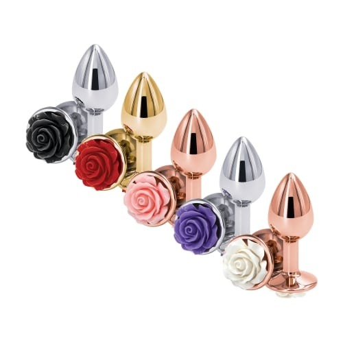 Характеристики Анальная металлическая пробка золотистого цвета с белой розой в основании NS Novelties Rose medium Avokado