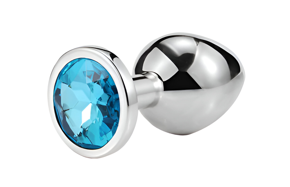 Анальная пробка из медицинской нержавеющей стали с голубым кристалом SKN модель MS62 размер S Avokado