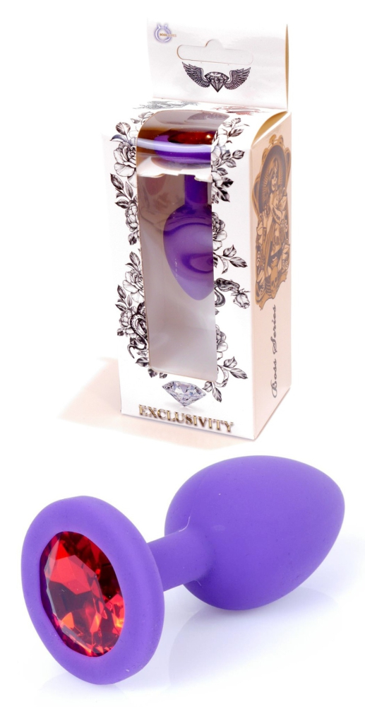 Анальная пробка М фиолетового цвета с кристаллом красного цвета BOSS of TOYS Jewellery plug Avokado