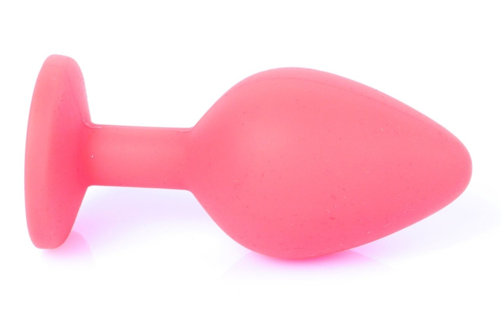 Анальная пробка М красного цвета с кристаллом голубого цвета BOSS of TOYS Jewellery plug Avokado