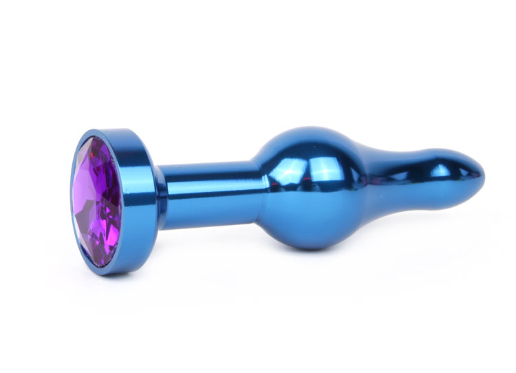 Анальная пробка металлическая JEWELRY синяя L 10,3 см D 2,8 см с фиолетовым кристаллом Avokado