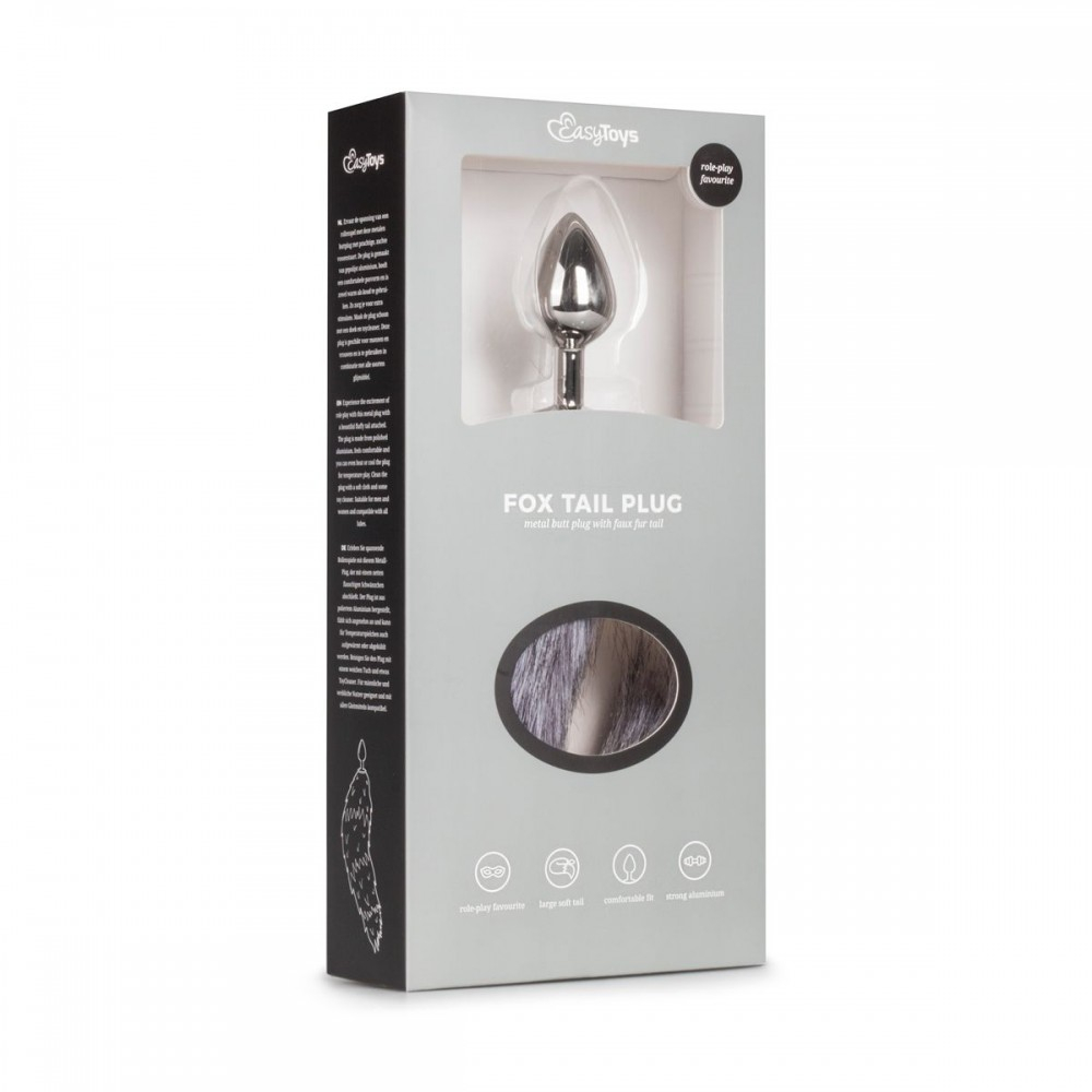 Характеристики Анальная пробка металлическая с лисьим серым меховым хвостиком Easy Toys размер М Avokado