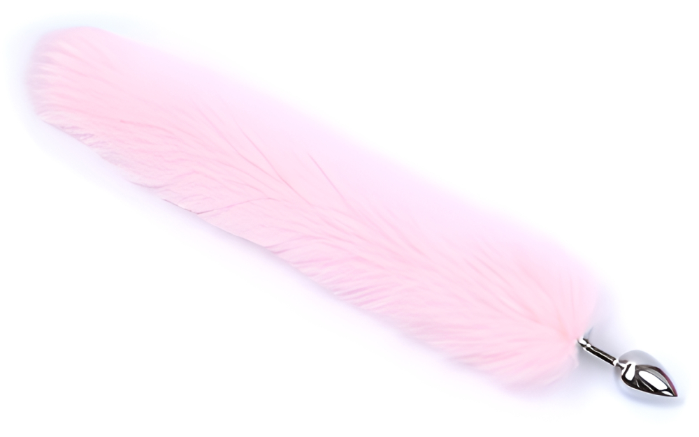 Анальная пробка металлическая серебристая с розовым хвостом SKN модель L29 размер S Avokado