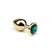 Золотая анальная пробка с шикарным зеленым