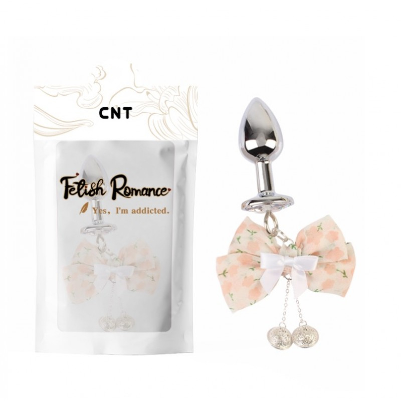 Анальная пробка из медицинской стали с камушком серебристого цвета с вишневым бантиком Cnt Cherry Blossom Avokado