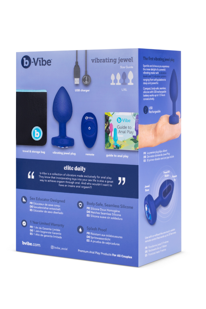 Анальная пробка с камнем и вибрацией L/XL B-Vibe с дистанционным пультом управления, синяя