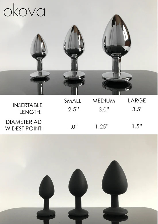 Металлическая пробка: Гладкая, холодная и чувственная. Изготовлена из высококачественного гипоаллергенного металла, который быстро адаптируется к температуре тела или может быть заранее нагрет или охлаждён для дополнительных ощущений. Металлическая пробка хорошо держит форму и вес, подходит для опытных пользователей.