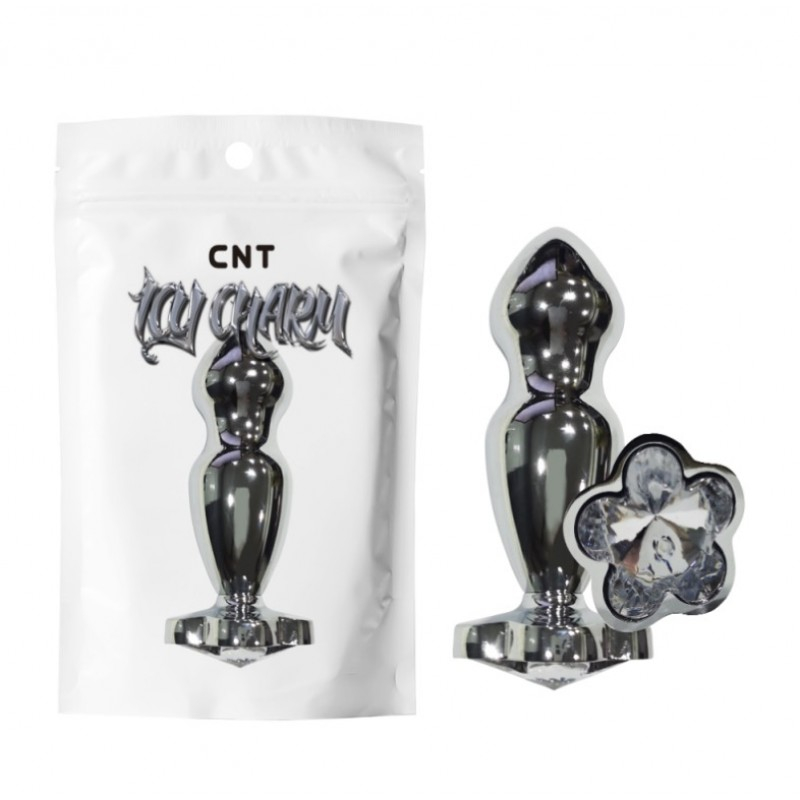 Анальная пробка ребристая из медицинской стали с камушком в форме цветка серебристого цвета Cnt Blossom Gem Avokado