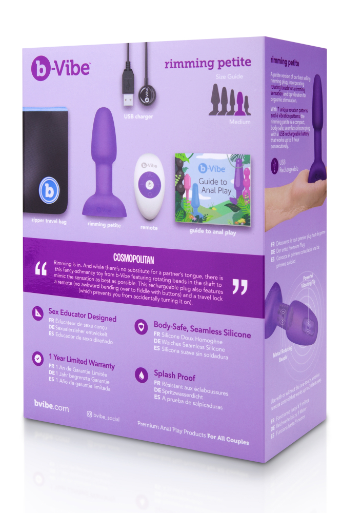Анальная пробка с римминг эффектом и пультом B-VIBE RIMMING PETITE, фиолетовая
