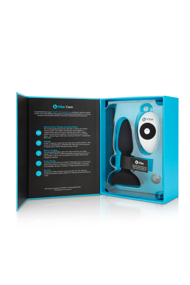 Пробка b-Vibe Rimming Petite – вращающаяся и вибрирующая для дистанционного управления.