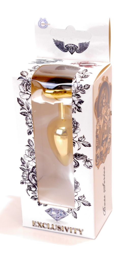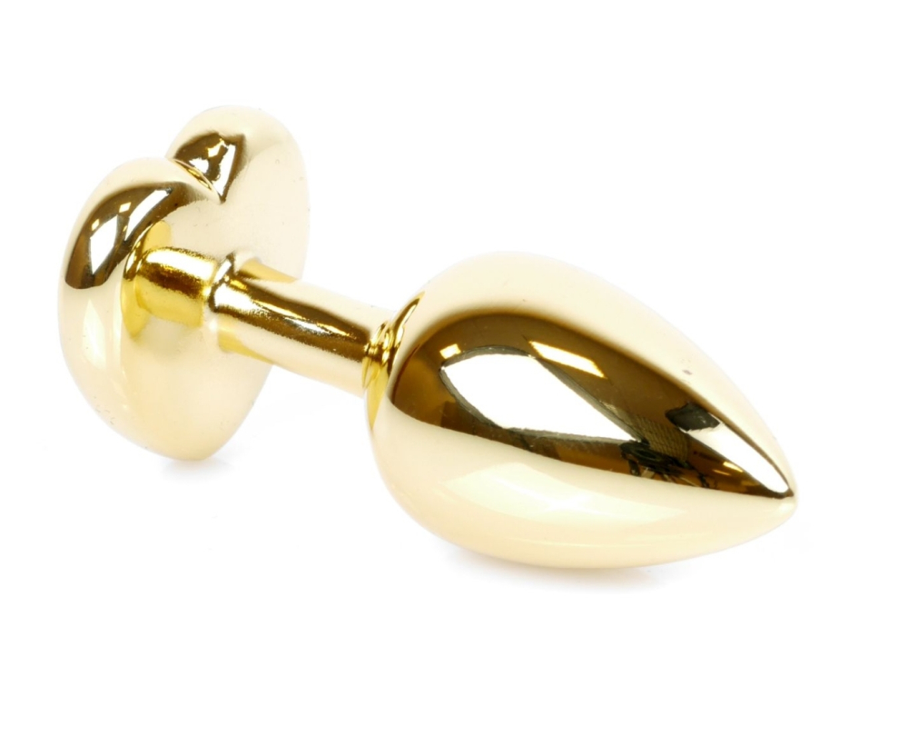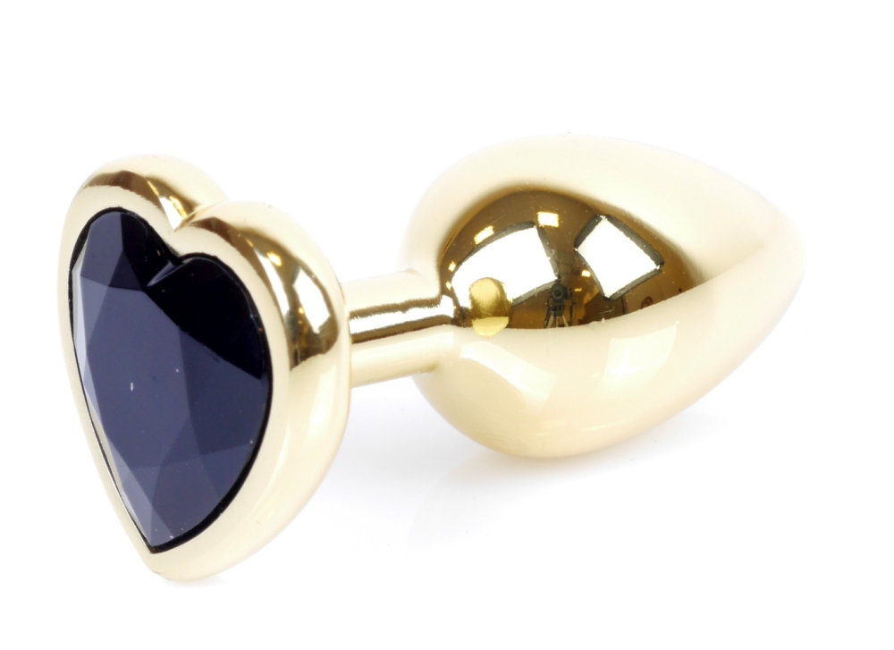 Анальная пробка S золотистого цвета с кристаллом в виде сердца черного цвета BOSS of TOYS Jewellery plug Avokado