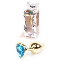 Анальная пробка S золотистого цвета с кристаллом в виде сердца голубого цвета BOSS of TOYS Jewellery plug Avokado