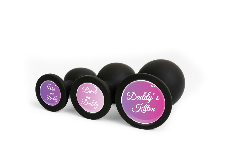 Анальная пробка силиконовая черная с надписью Breed me Daddy OKOVA размер S Avokado