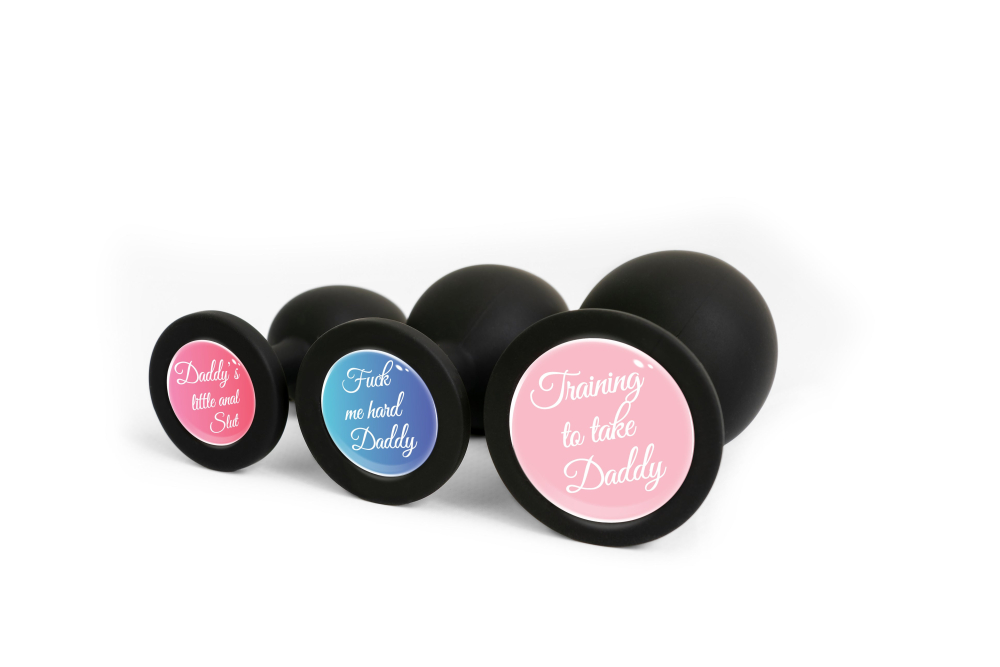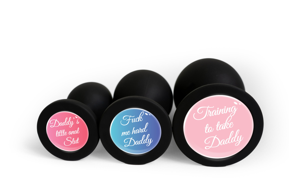 Анальная пробка силиконовая черная с надписью Daddy's little anal Slut OKOVA размер M Avokado