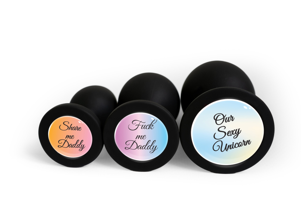Анальная пробка силиконовая черная с надписью Fuck me Daddy OKOVA размер S Avokado
