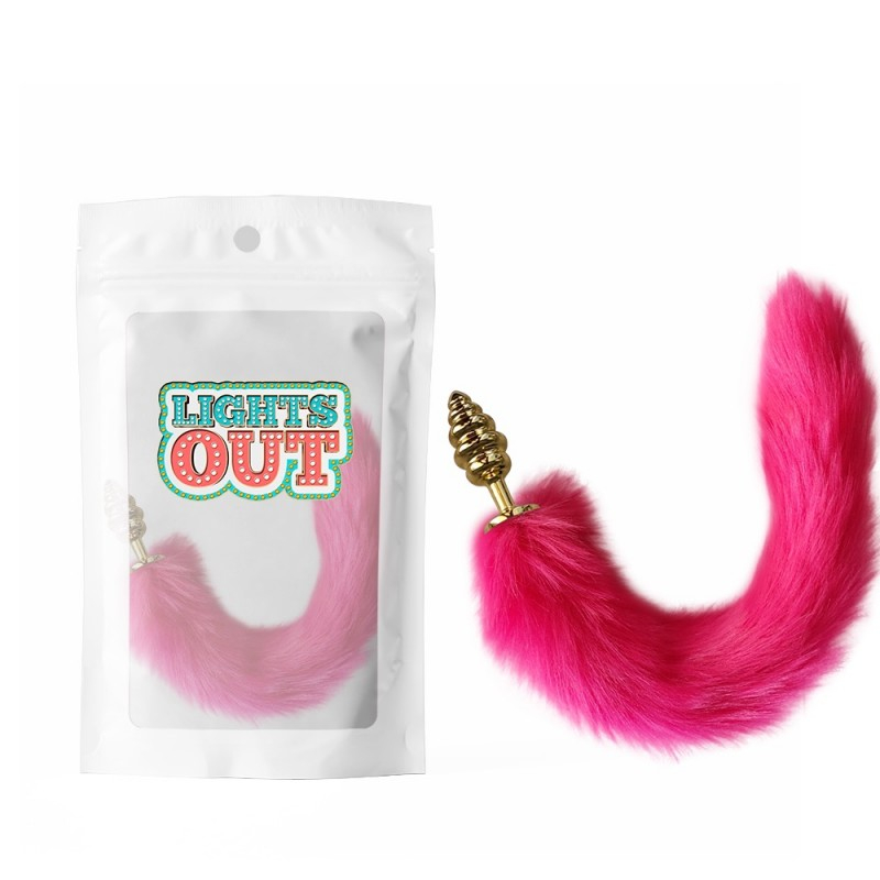 Анальная пробка спиралевидная металлическая золотистого цвета с малиновым хвостом Cnt Foxs Spiral Avokado