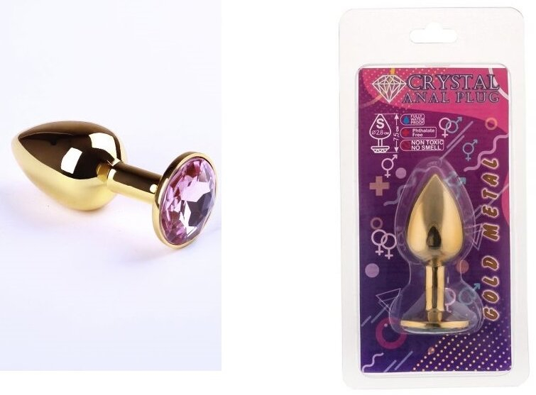 Металлическая анальная пробка для начинающих с кристаллом "Розовый топаз".