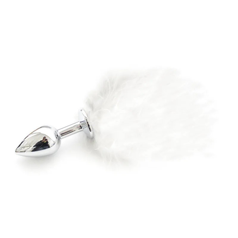 Анальная пробочка с белый пушком Metal Plug with White Tail Avokado