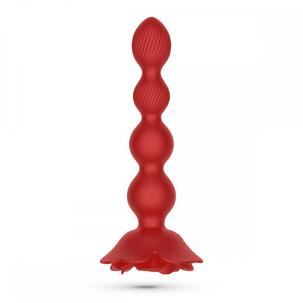 Анальная елочкака Роза с вибрацией и ротацией Rosaline Crushious, с пультом, силиконовая, красная