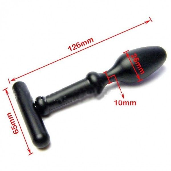 Анальная пробка черного цвета, изготовлена из медицинской стали. Общая длина 12,6 см., эффективная длина 6,5 см., максимальный диаметр 2,6 см., минимальный диаметр 1 см., вес 95 грамм.