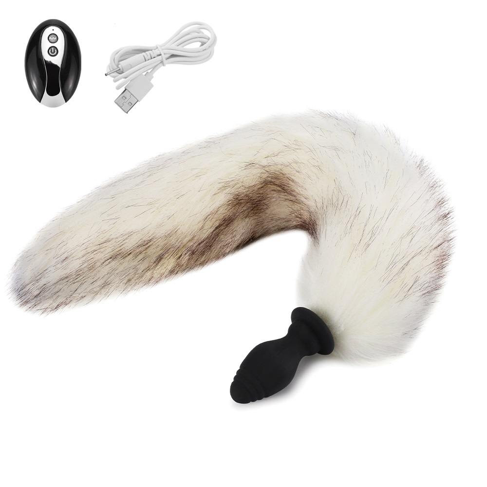 Анальная пробка с хвостом с вибрацией на пульте управления Runyu, белый.