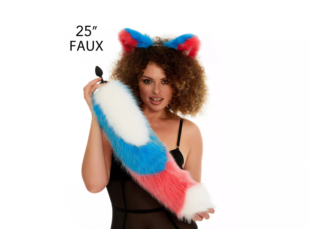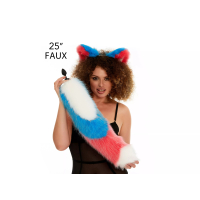 Характеристики Анальный меховой хвост без пробки Трехцветный Белый Ярко голубой ярко розовый с белым кончиком OKOVA 600 мм Avokado