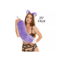 Анальный меховой пушистый хвост без пробки Фиолетовый с белым кончиком OKOVA 600 мм Avokado