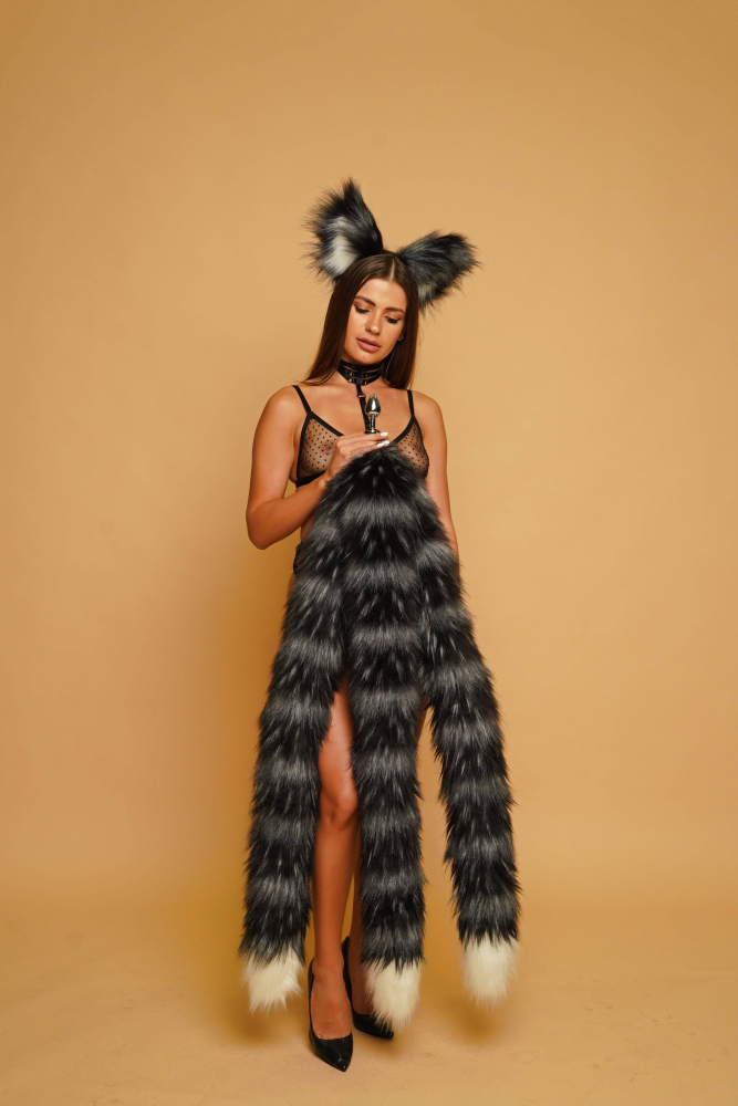Характеристики Анальный тройной меховой хвост без пробки Чернобурка с белым кончиком OKOVA 1000 мм Avokado