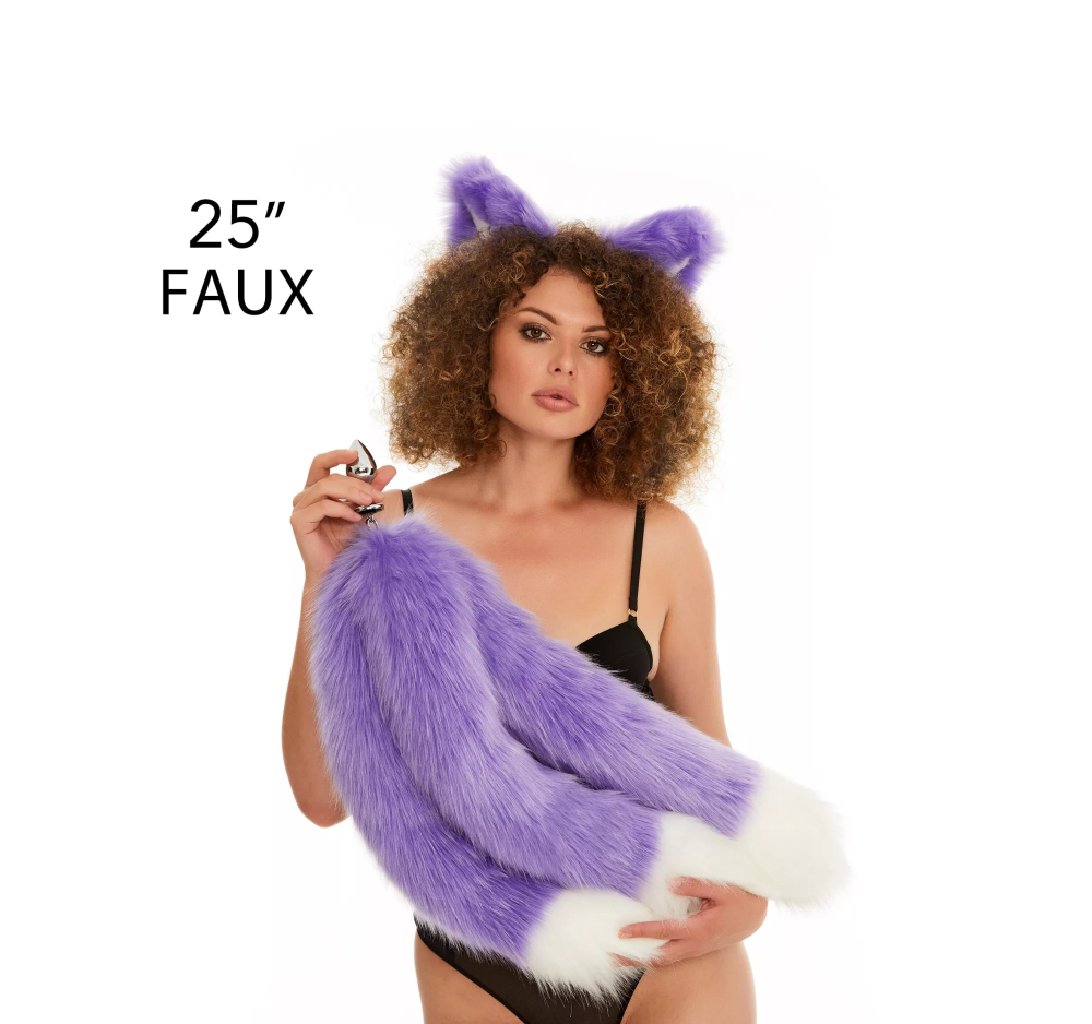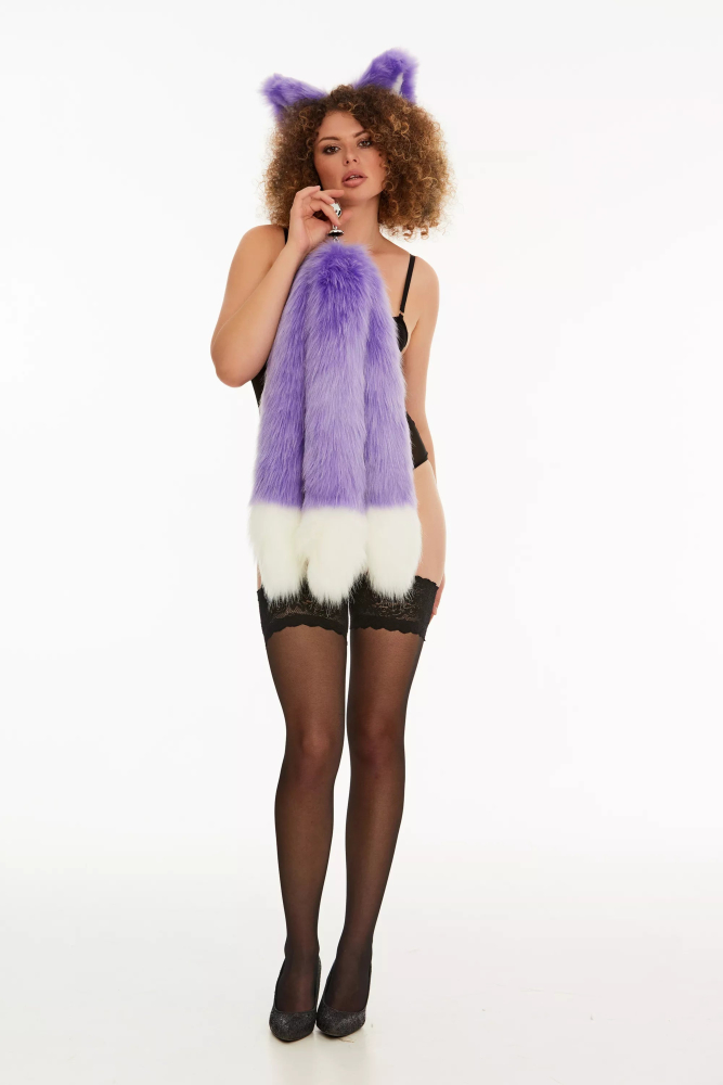 Анальный тройной меховой хвост без пробки Фиолетовый с белым кончиком OKOVA 600 мм Avokado