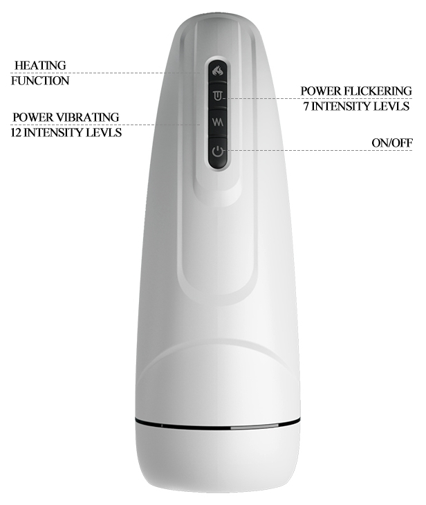 Устройство массирует пенис при помощи вибростимуляции и стимуляции головки полового члена язычком, в глубине мастурбатора.