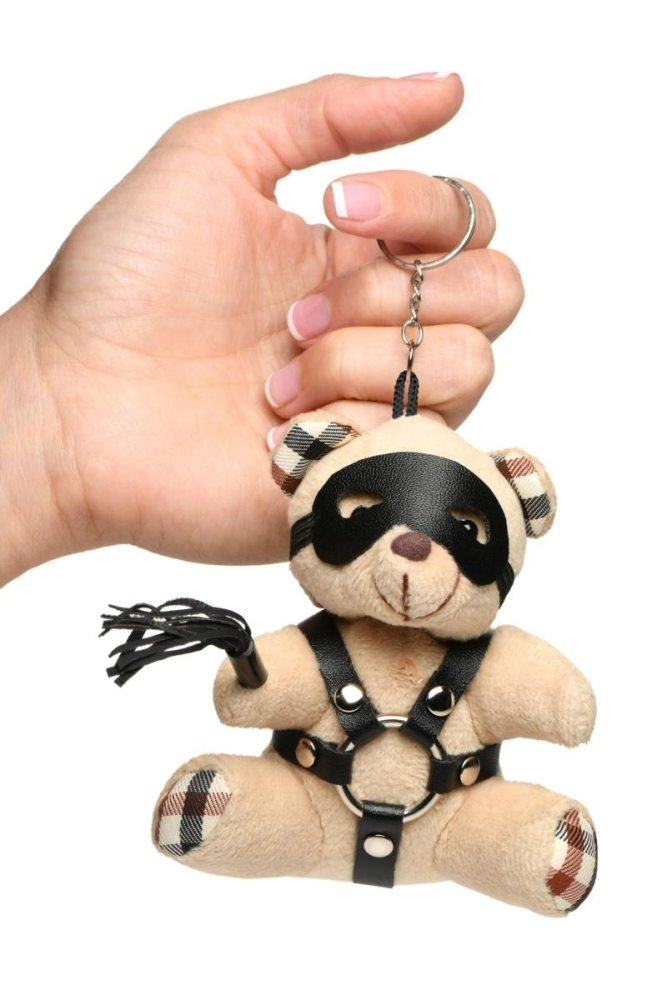 Брелок плюшевый медвежонок БДСМ с кнутом, 9 см х 9 см