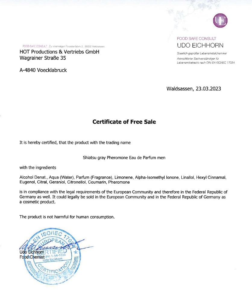 Духи с феромонами «Gray» Shiatsu