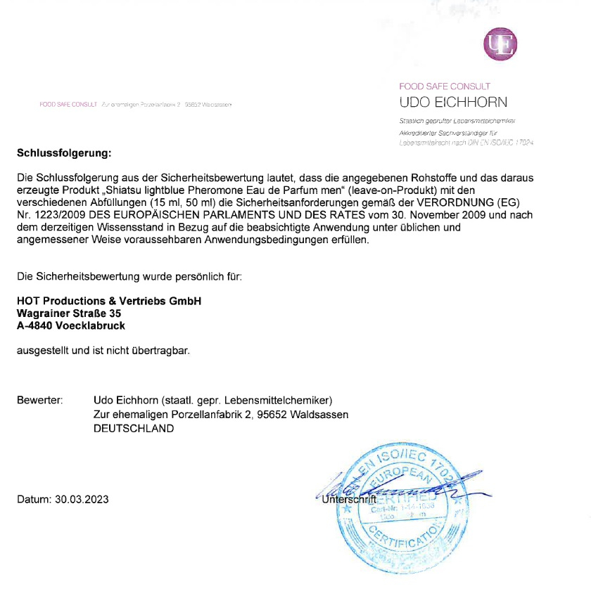 Аромат для мужчин SHIATSU Pheromon светло-голубой 50 мл