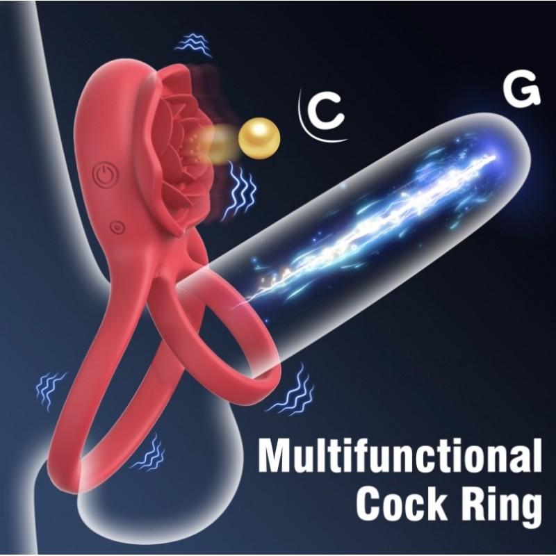 Эрекционное кольцо с вибростимулятором для клитора Rose Dual Power Ring красный Avokado