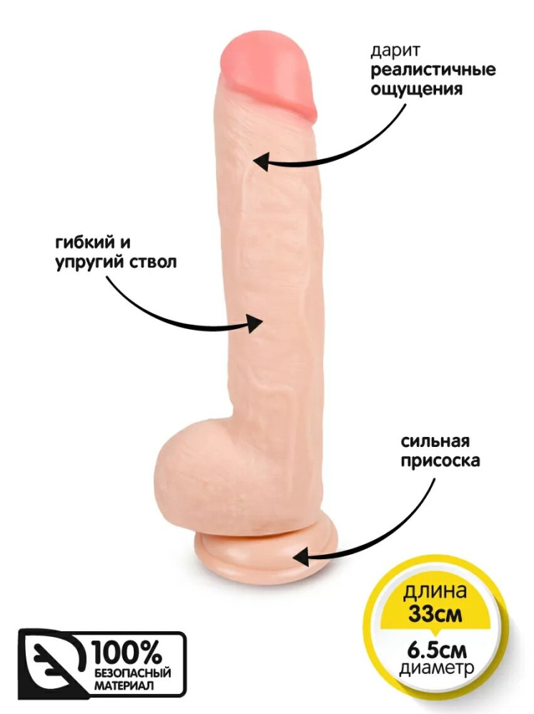 Изготовлен из качественного материала. У него ярко выраженная головка и хорошо прорисованный ствол с жилками и складочками! А ещё у него есть мошонка, что добавляет пикантных ощущений в процессе…