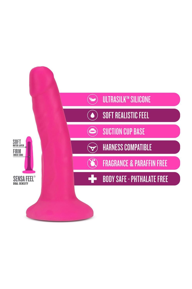 Фаллоимитатор двойной плотности с присоской Blush Neo Elite, неоново-розовый