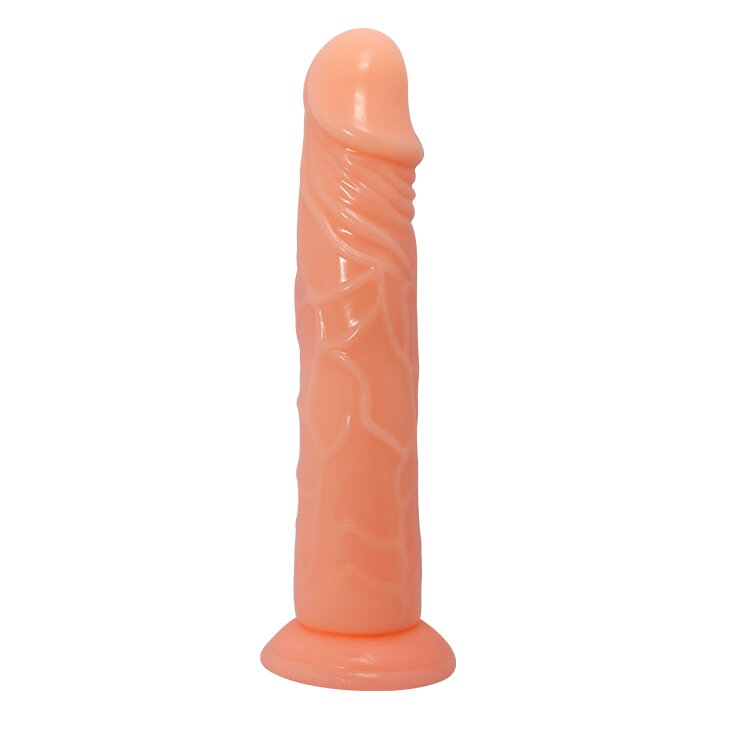 Фаллоимитатор на присоске телесного цвета с рельефной поверхностью.