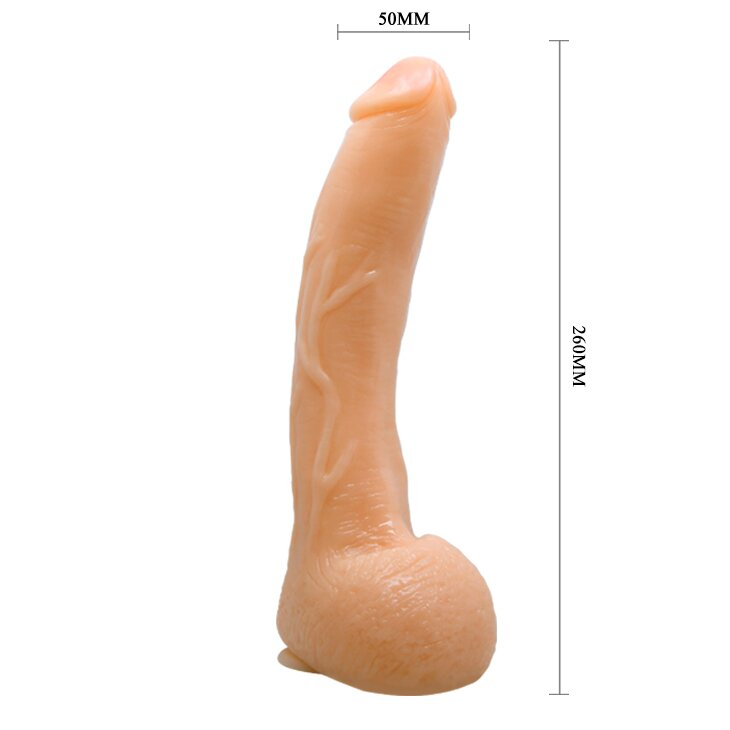 Фаллоимитатор с мошонкой и ярко выраженной головкой, своей рельефной формой напоминает разгоряченное мужское достоинство, готовое предаться сладостным утехам.