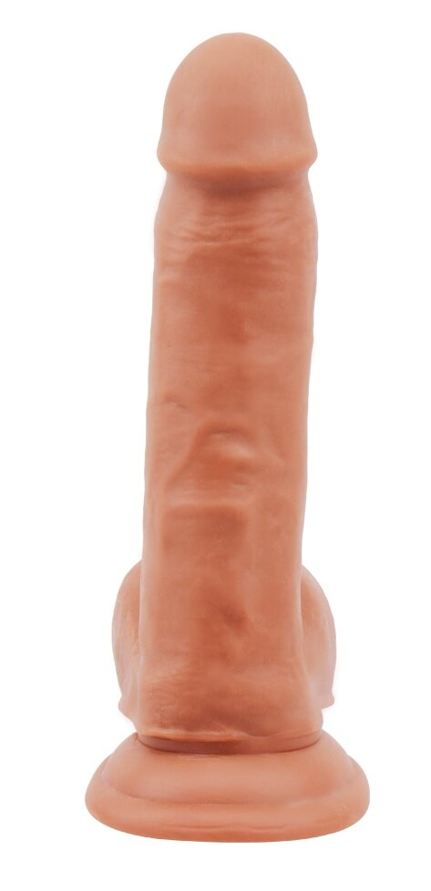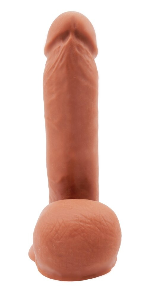 Реалистичный фаллоимитатор с выраженной головкой, венчающей слегка изогнутый ствол.