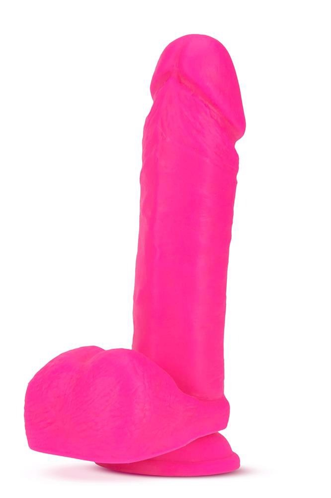 Фаллоимитатор двойной плотности с яичками Blush Neo Elite, неоново-розовый