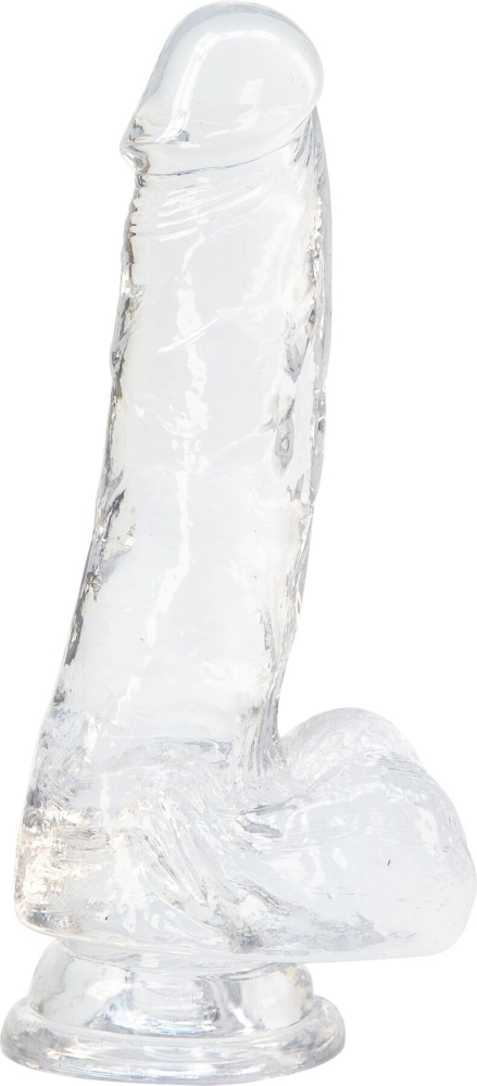 Фаллоимитатор реалистик с присоской и мошонкой прозрачного цвета ADDICTION Crystal Avokado