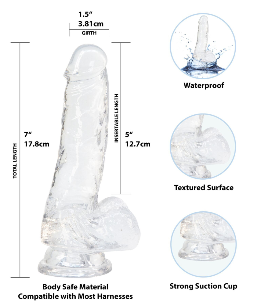 Характеристики Фаллоимитатор реалистик с присоской и мошонкой прозрачного цвета ADDICTION Crystal Avokado