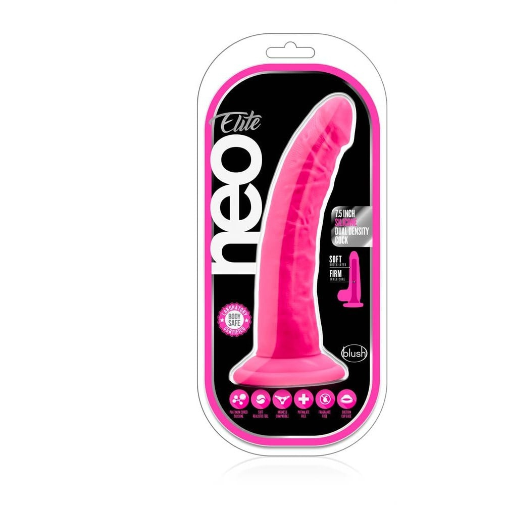 Фаллоимитатор силиконовый реалистичный розовый на присоске NEO ELITE 7.5INCH DUAL DENSITY NEON Avokado