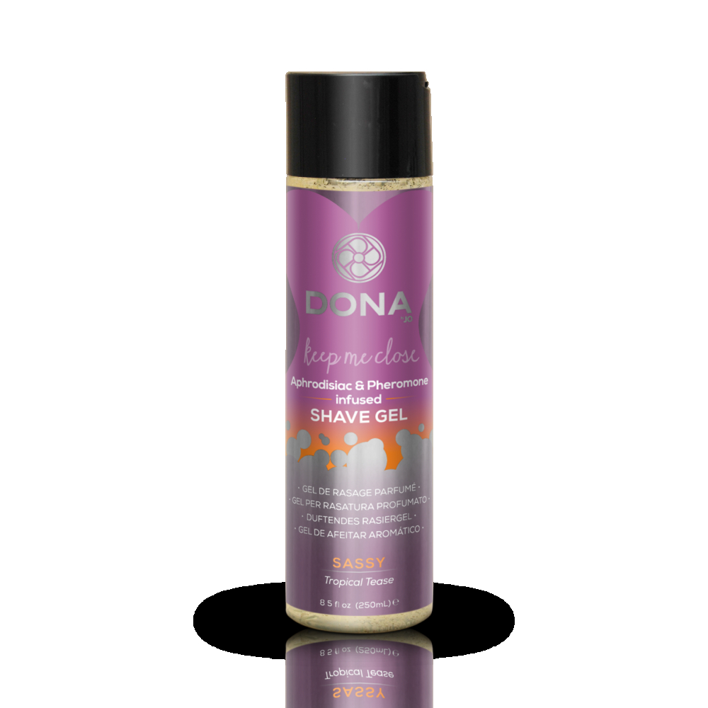 Гель для бритья DONA Intimate Shave Gel - Sassy - Tropical Tease (250 мл) с ароматом ''Шалость'' – отличное начало страстной прелюдии. Входящие в состав феромоны и афродизиаки возбуждают, разогревают фантазию, а другие компоненты делают кожу невероятно гладкой и приятной – так и тянет к ней прикасаться без остановки.