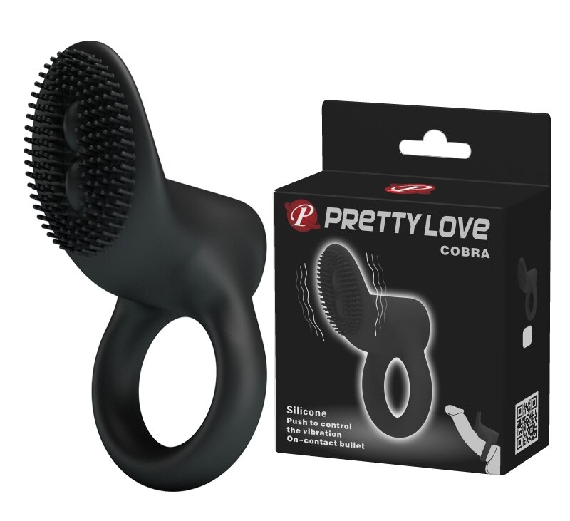 Кольцо эрекционное для пениса с вибростимуляцией клитора черное Pretty Love COBRA Avokado