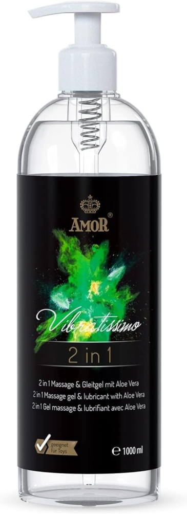 Средство 2 в 1 – массажное масло и лубрикант из алоэ вера. Создано на водной основе, обладает формулой, способствующей длительному увлажнению и отличному скольжению. Не содержит вредных веществ, клинически и дерматологически тестировано. Подходит для латексных и силиконовых секс-игрушек. Объем – 1000 мл.