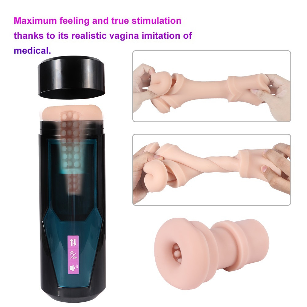 Устройство массирует пенис при помощи возвратно-поступательных движений, имитируя фрикции. Одновременно с этим возникает хорошо ощутимый присасыващий эффект, как это бывает при реальном половом акте. 10 различных скоростных режима позволят выбрать наиболее комфортную скорость стимуляции, а также 9 режимов вибрации.