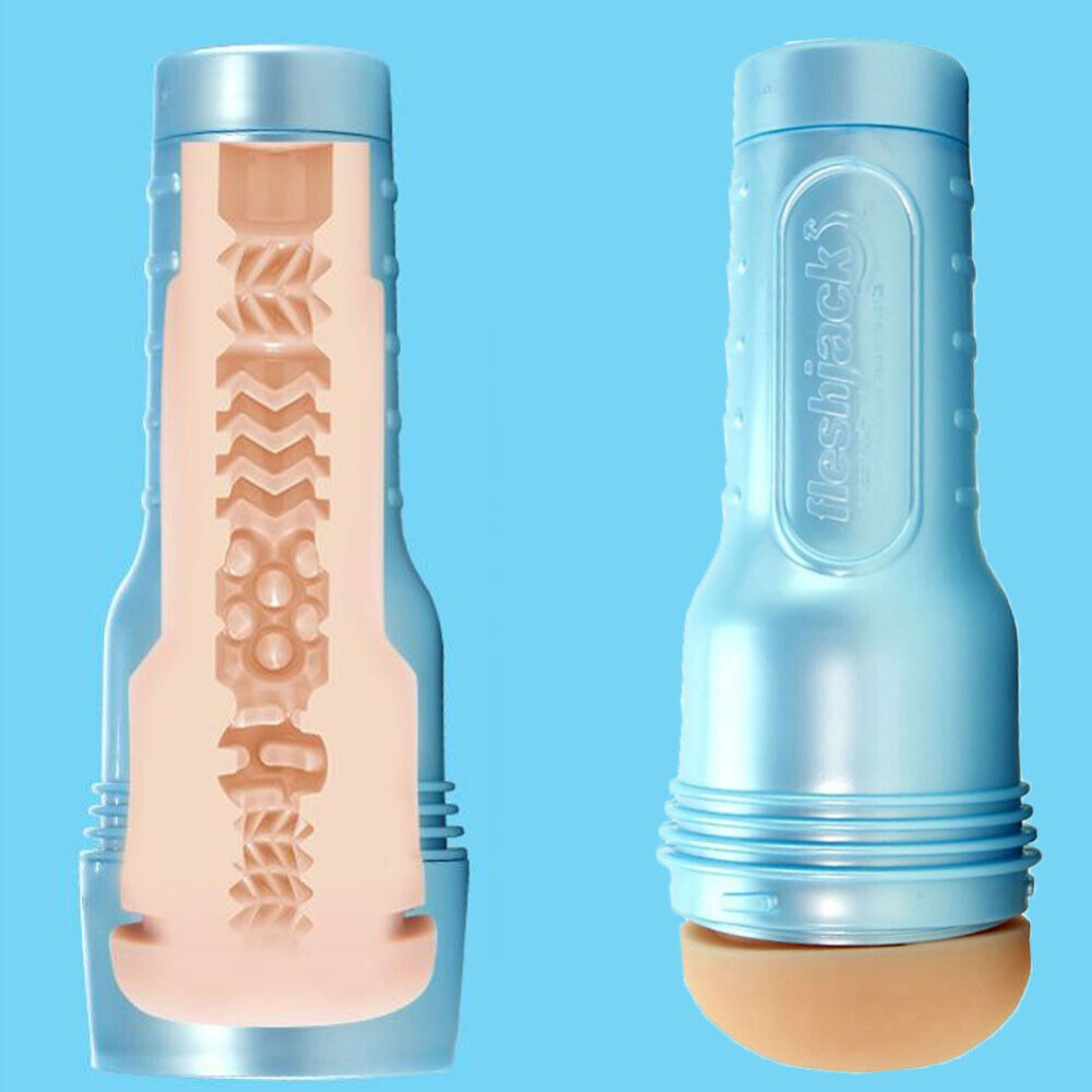 В комплект входит мастурбатор Diego Sans Fleshjack Butt с внутренней текстурой Sex Machine и перламутровый синий футляр Fleshjack.
