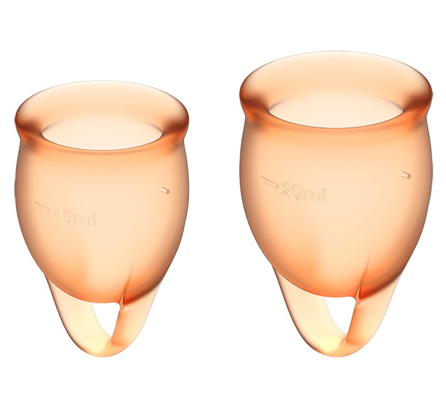 Менструальные чаши Satisfyer Feel Confident сделаны из медицинского силикона и удобные в использовании, выполненные в игривом дизайне, доступны в наборе из двух штук. Объем составляет 15 и 20 мл, что делает их подходящими как для небольшого количества выделений, так и для более обильных.